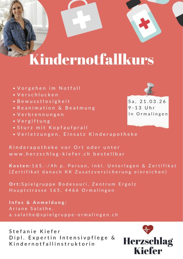Kosten: CHF 165.-/4 h p.P. inkl. Unterlagen und Zetifikat (Zertifikat kann KK Zusatzversicherung eingereicht werden)