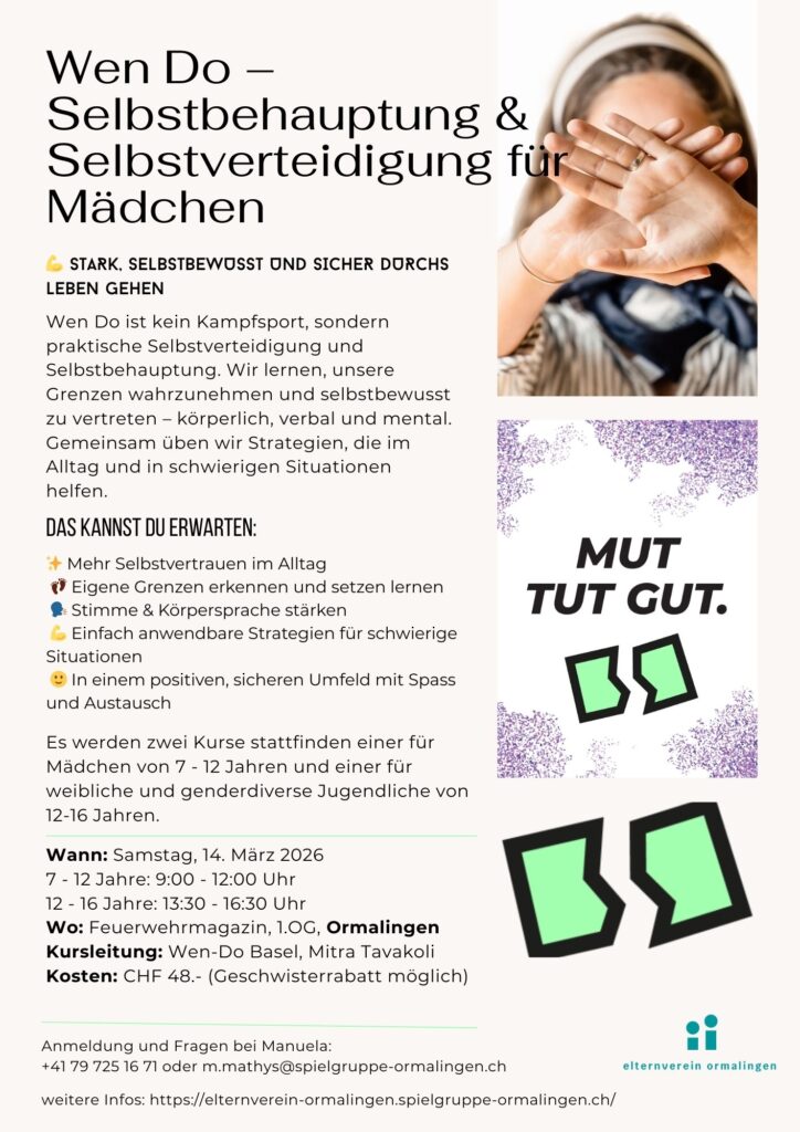 Im Kurs stärken wir das Selbstvertrauen, die innere Sicherheit und die soziale Kompetenz der Teilnehmenden. Spielerisch und praxisnah üben wir Strategien, die im Schulalltag, in der Freizeit oder in schwierigen Situationen wirklich helfen. Dabei steht ein respektvolles, geschütztes Umfeld im Mittelpunkt, in dem Spass, Austausch und gegenseitige Stärkung Platz haben.